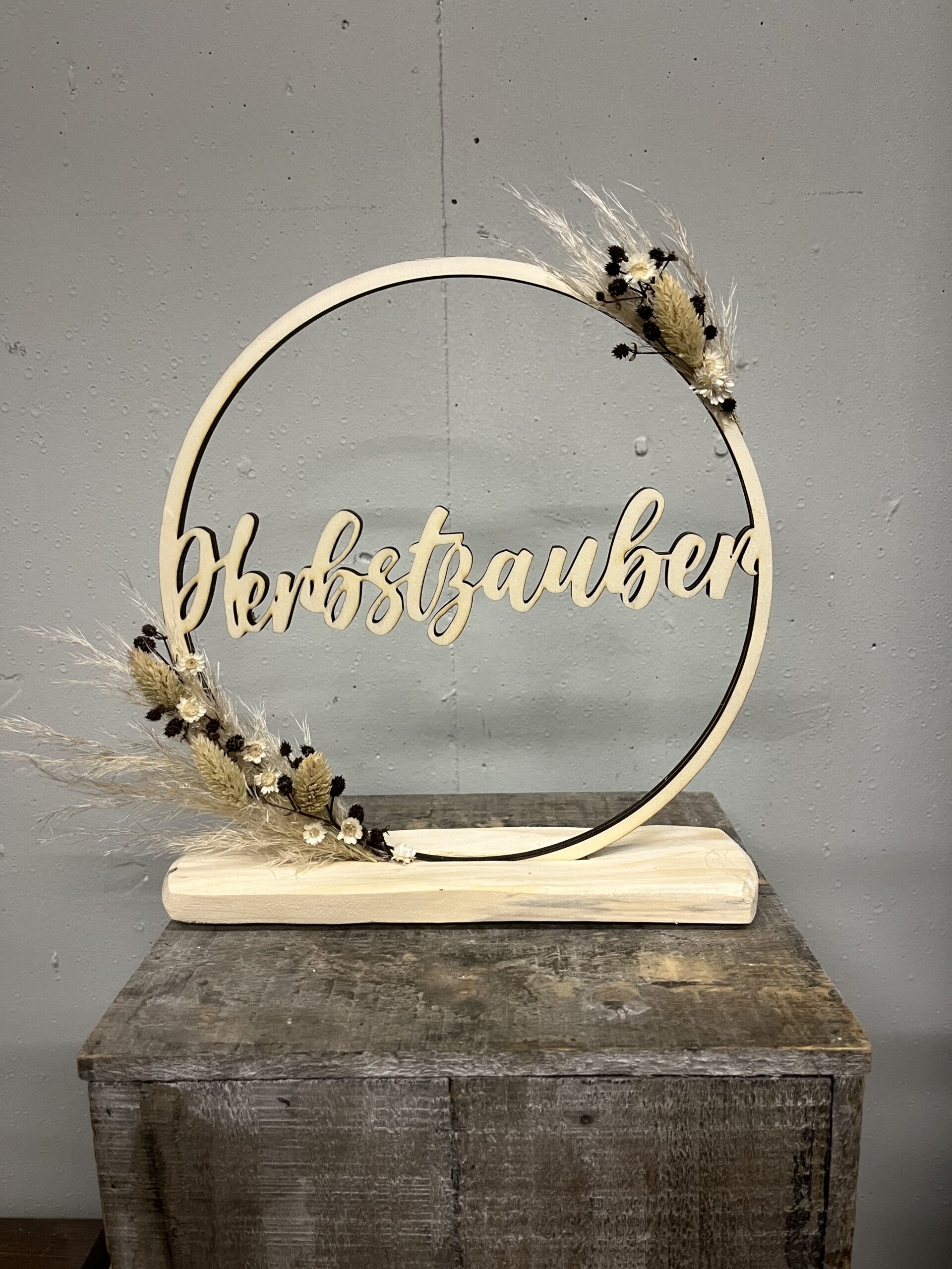 Herbstzauber Geschrieben von Andrea Castagliuolo am 11. Oktober 2023. Veröffentlicht in Allgemein, Deko & Geschenke, Herbst, Meine Arbeiten. Keine Kommentare zu Herbstzauber stehender Holzring beschriftet und mit Trockenblumen dekoriert.